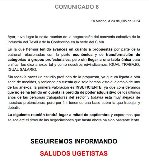 6ª Reunión de la Mesa Negociadora Convenio del Textil y Confección
