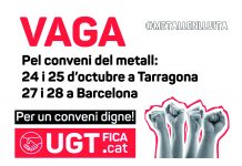 Vaga pel conveni del metall: 24 i 25 d’octubre a Tarragona i 27 i...