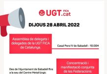 El pròxim 10 de maig a les 9:30 h tots els delegats i delegades de la UGT FICA de Catalunya esteu convocats a la...