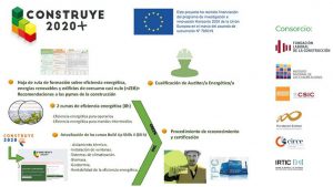 La base en la que se fundamenta el trabajo del consorcio de Construye 2020+, coordinado por la Fundación y formado por el Instituto de Ciencias de la Construcción Eduardo Torroja (IETCC-CSIC), la Fundación Estatal para la Formación en el Empleo (Fundae), el Instituto Nacional de las Cualificaciones (Incual), el Centro de Investigación de Recursos y Consumos Energéticos (Circe) y el Instituto de Robótica y Tecnologías de la Información y la Comunicación (IRTIC) de la Universidad de Valencia, tiene tres focos fundamentales: el impulso del empleo ‘verde’ en la industria de la construcción, el fomento de la capacitación y acreditación profesional en Eficiencia Energética (EE), Sistemas de Energía Renovable (SER) y Edificios de Energía Casi Nula (EECN) y el fomento de la construcción sostenible.